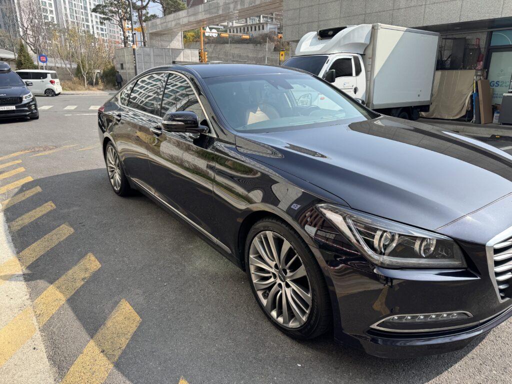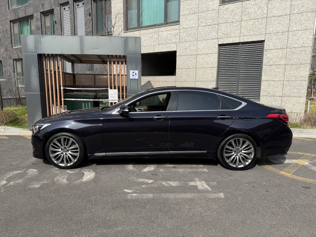 3.8 awd 파이니스트 에디션 블랙퍼블 컬러, 2016년 1월 생산 2월 등록, 즉, DH 라는 모델로 불리우는 끝 연식이다. 2016년 7월인가부터 연식변경이고 그때부터 G80 이라는 이름으로 부르는 그것이다. (정확히는 DH 페이스리프트)